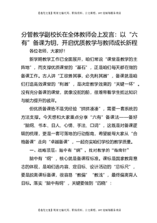 分管教学副校长在全体教师会上发言:以“六有”备课为钥,开启优质教学与教师成长新程.docx