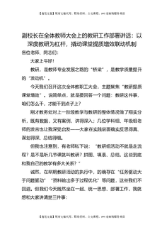 副校长在全体教师大会上的教研工作部署讲话:以深度教研为杠杆,撬动课堂提质增效联动机制.docx