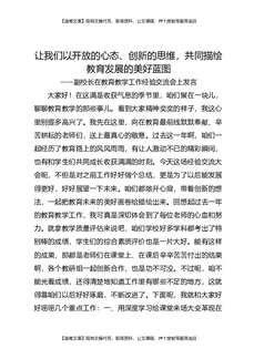 副校长在教育教学工作经验交流会上发言:让我们以开放的心态、创新的思维,共同描绘教育发展的美好蓝图.docx