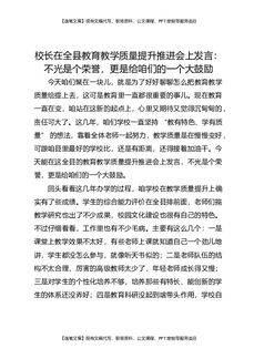 校长在全县教育教学质量提升推进会上发言:不光是个荣誉,更是给咱们的一个大鼓励