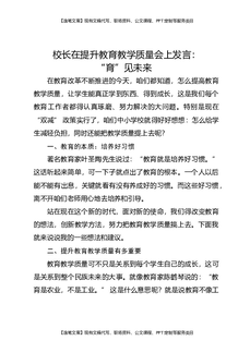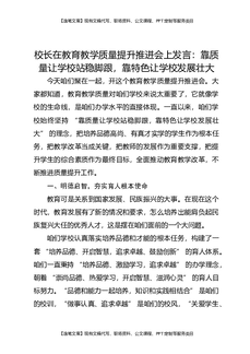 校长在教育教学质量提升推进会上发言:靠质量让学校站稳脚跟,靠特色让学校发展壮大