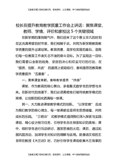 校长在提升教育教学质量工作会上讲话:聚焦课堂、教师、学情、评价和家校这5个关键领域