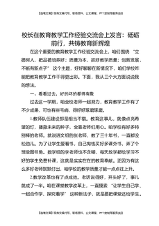 校长在教育教学工作经验交流会上发言:砥砺前行,共铸教育新辉煌