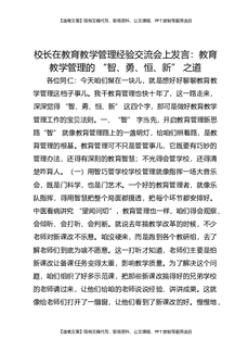 校长在教育教学管理经验交流会上发言:教育教学管理的“智、勇、恒、新”之道