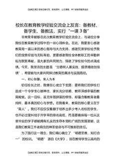 校长在教育教学经验交流会上发言:备教材、备学生、备教法,实行“一课3备”