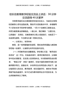 校长在教育教学经验交流会上讲话:30分钟交流获得40次掌声