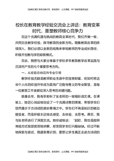 校长在教育教学经验交流会上讲话:教育变革时代,重塑教师核心竞争力