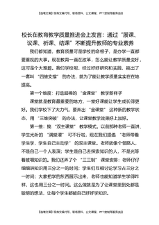 校长在教育教学质量推进会上发言:通过“展课、议课、析课、结课”不断提升教师的专业素养