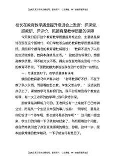 校长在教育教学质量提升推进会上发言:抓课堂、抓教研、抓评价、抓德育是教学质量的保障