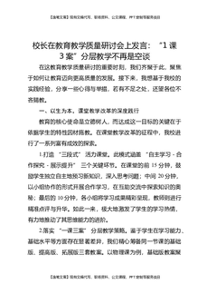 校长在教育教学质量研讨会上发言:“1课3案”分层教学不再是空谈