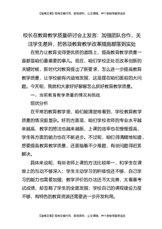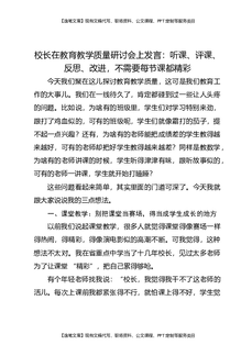 校长在教育教学质量研讨会上发言:听课、评课、反思、改进,不需要每节课都精彩