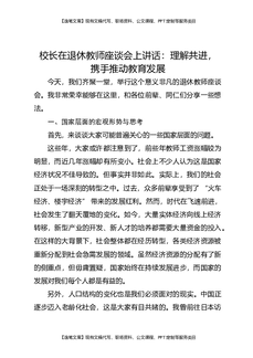 校长在退休教师座谈会上讲话:理解共进,携手推动教育发展