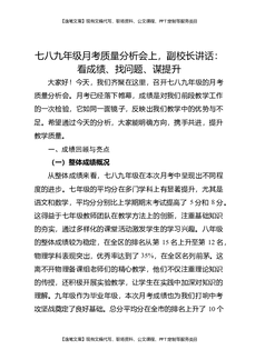 七八九年级月考质量分析会上,副校长讲话:看成绩、找问题、谋提升