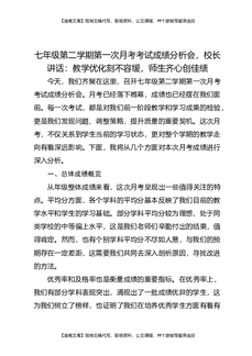 七年级第二学期第一次月考考试成绩分析会,校长讲话:教学优化刻不容缓,师生齐心创佳绩