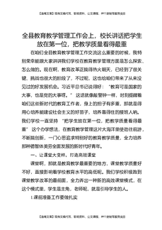 全县教育教学管理工作会上,校长讲话把学生放在第一位,把教学质量看得最重