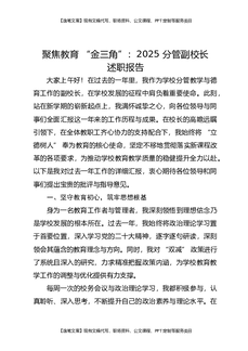 聚焦教育“金三角”:2025分管副校长述职报告