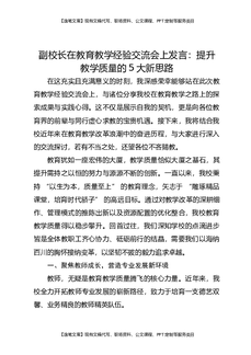 副校长在教育教学经验交流会上发言:提升教学质量的5大新思路