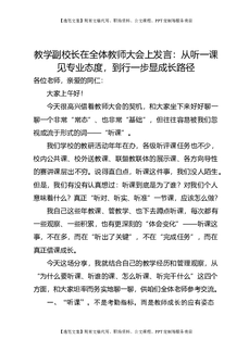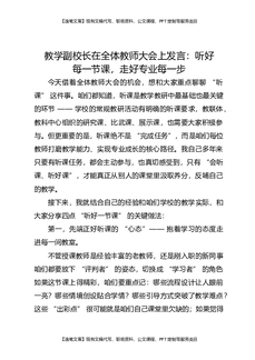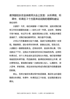 教学副校长在全体教师大会上发言:从听课前、听课中、听课后3个方面来说说我的理解和建议