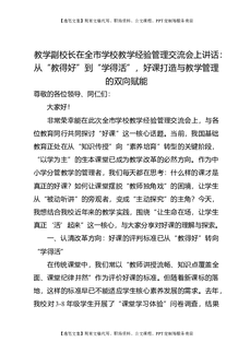 教学副校长在全市学校教学经验管理交流会上讲话:从“教得好”到“学得活”,好课打造与教学管理的双向赋能