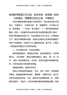 教育教学管理工作汇报:校长讲话:教育是一项伟大的事业,需要我们持之以恒、不懈努力