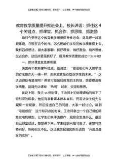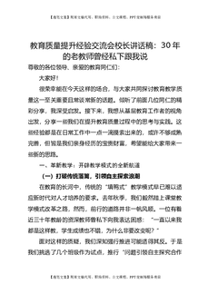 教育质量提升经验交流会校长讲话稿:30年的老教师曾经私下跟我说