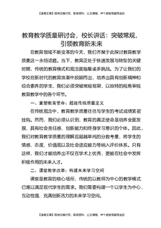教育教学质量研讨会,校长讲话:突破常规,引领教育新未来