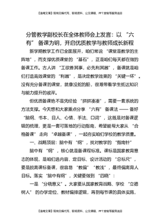 分管教学副校长在全体教师会上发言:以“六有”备课为钥,开启优质教学与教师成长新程