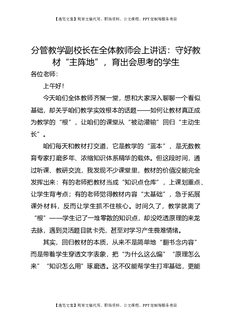 分管教学副校长在全体教师会上讲话:守好教材“主阵地”,育出会思考的学生