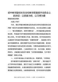 初中教学副校长在全校教学质量提升动员会上的讲话:以质量为纲,以习惯为要