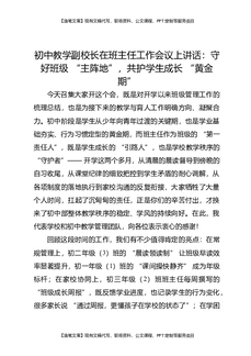 初中教学副校长在班主任工作会议上讲话:守好班级“主阵地”,共护学生成长“黄金期”