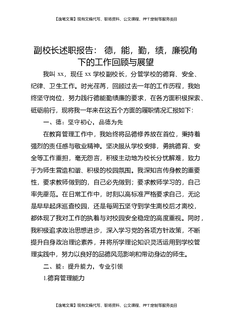 副校长述职报告:德,能,勤,绩,廉视角下的工作回顾与展望