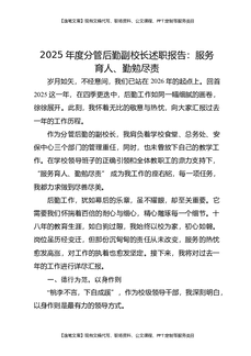 2025年度分管后勤副校长述职报告:服务育人、勤勉尽责