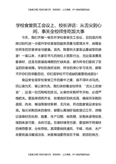 学校食堂员工会议上,校长讲话:从舌尖到心间,事关全校师生吃饭大事.docx