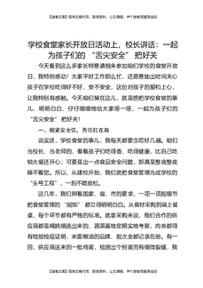 学校食堂家长开放日活动上,校长讲话:一起为孩子们的“舌尖安全”把好关.docx