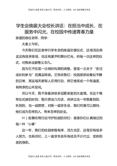 学生会换届大会校长讲话:在担当中成长,在服务中闪光,在校园中传递青春力量.docx