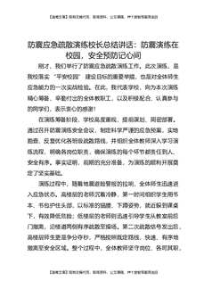 防震应急疏散演练校长总结讲话:防震演练在校园,安全预防记心间.docx