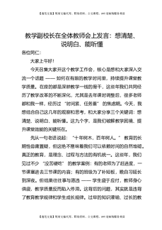 教学副校长在全体教师会上发言:想清楚、说明白、能听懂.docx