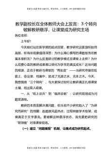 教学副校长在全体教师大会上发言:3个转向破解教研悬浮,让课堂成为研究主场.doc