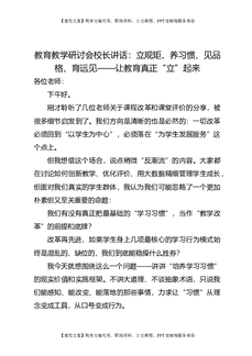 教育教学研讨会校长讲话:立规矩、养习惯、见品格、育远见-让教育真正“立”起来.docx