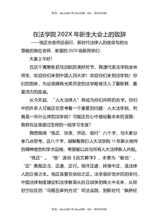 在法学院202X年新生大会上的致辞:恪正协衷怀远砺行,新时代法律人的使命与担当.docx