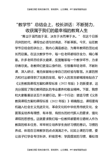 “教学节”总结会上,校长讲话:不断努力,收获属于我们的最幸福的教育人生.docx