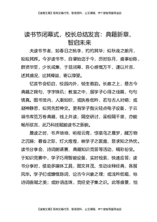 读书节闭幕式,校长总结发言:典籍新章,智启未来.docx