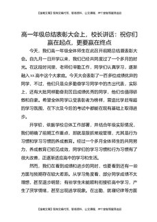 高一年级总结表彰大会上,校长讲话:祝你们赢在起点,更要赢在终点.docx