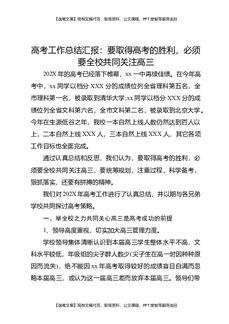 高考工作总结汇报:要取得高考的胜利,必须要全校共同关注高三.docx