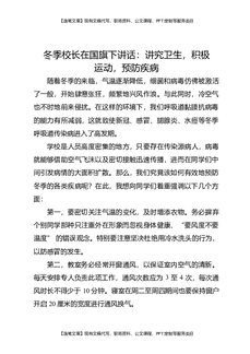 冬季校长在国旗下讲话:讲究卫生,积极运动,预防疾病.docx
