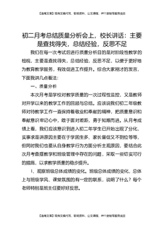 初二月考总结质量分析会上,校长讲话:主要是查找得失,总结经验,反思不足.docx