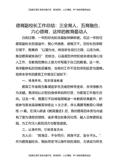 德育副校长工作总结:三全育人,五育融合,六心德育,这样的教育最动人.docx
