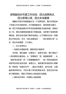 德育副校长年度工作总结:四大成果亮点、四大管理心得、四大未来展望.docx