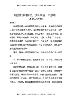 新教师培训会议,校长讲话:不浮躁,不急功近利.doc