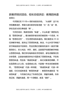 新教师培训活动,校长总结讲话:教育的味道.doc